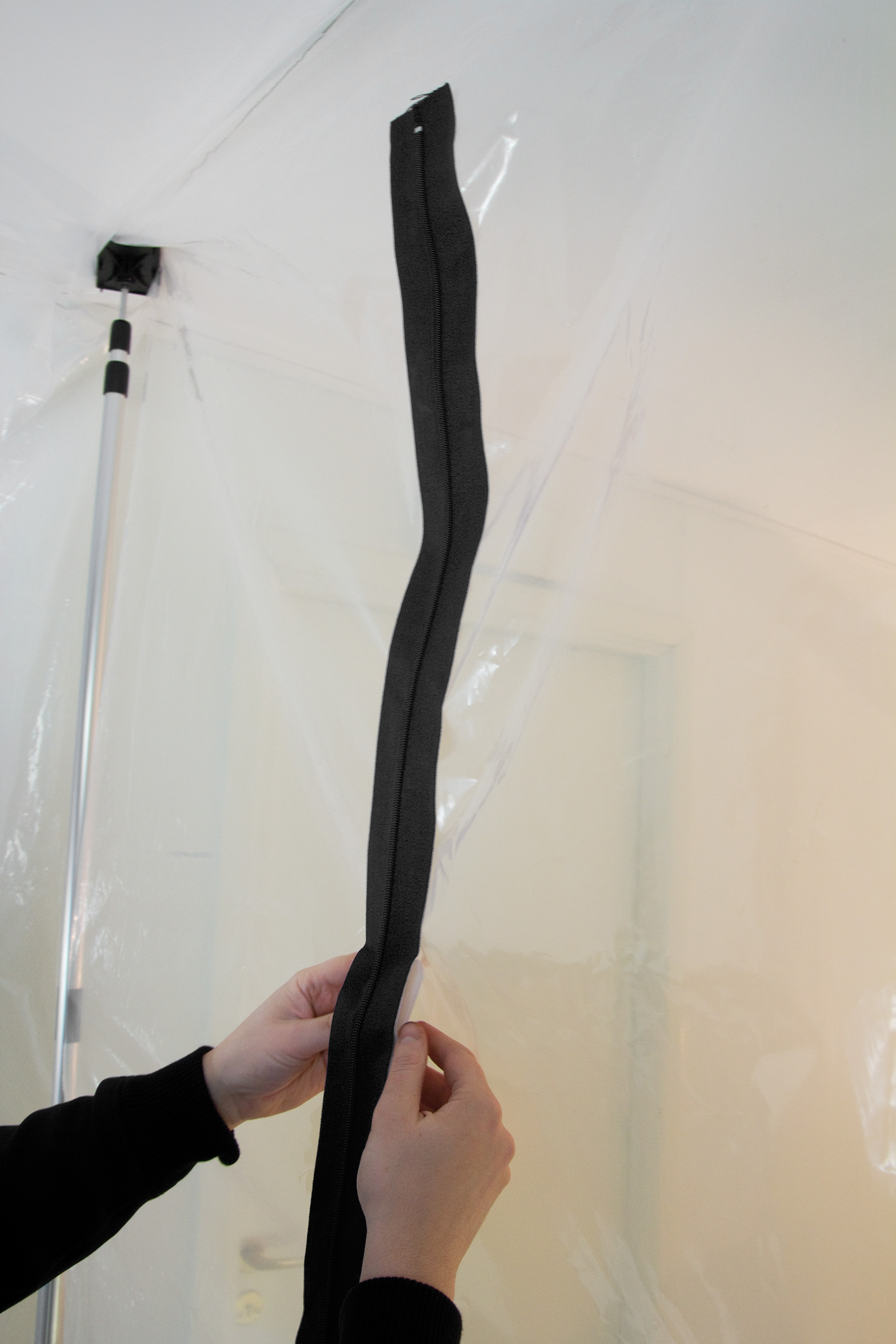 Skab passage i støvvæggen med en selvklæbende lynlås. Længde 2 m.