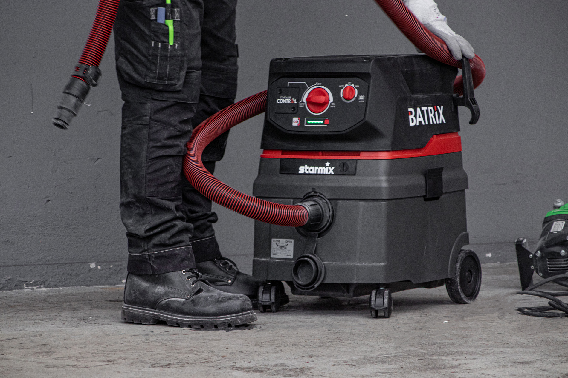 Med en støvsuger på batteri behøver du ikke længere at bekymre dig om den nærmeste stikkontakt eller oprulning af det lange kabel. Samtidig er Batrix den første våd/tør støvsuger på batteri, der har samme kraft som en støvsuger med ledning. Støvsugeren er udstyret med integreret Cordless Control, som registrerer vibrationer i støvsugerslangen når du arbejder med elværktøj, og som dermed starter suget. Støvsugeren er L-klassificeret og dermed godkendt til bl.a. husstøv, jord og andet ufarligt støv.