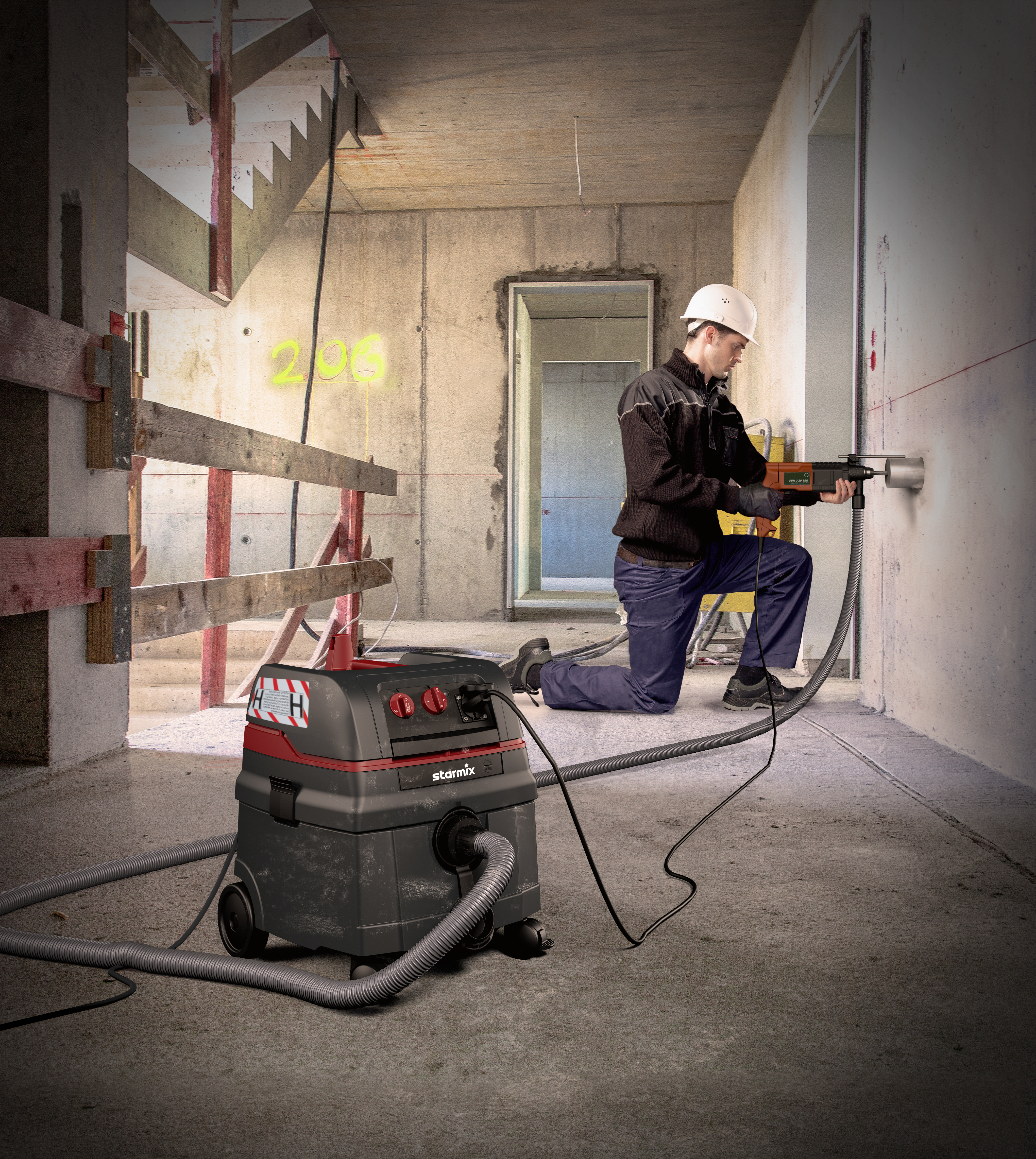 Starmix ISC "H" er en kompakt industristøvsuger, der kan bruges til både vådt og tørt affald. Støvsugeren er "H"-klassificeret og er dermed godkendt til meget skadeligt støv, der kan være kræft- og sygdomsfremkaldende, herunder: Respirable kvartsholdige materialer, asbest, skimmel, cement og mørtel, sand og grus, murbrokker, løvtræ, fyldemasse (med silikat), bitumen såsom tjære og asfalt, mineralske fibre, isoleringsmateriale såsom glasuld. De effektive HEPA 14 filtre opsamler hele 99,995% af det farlige støv der skabes på byggepladsen.
