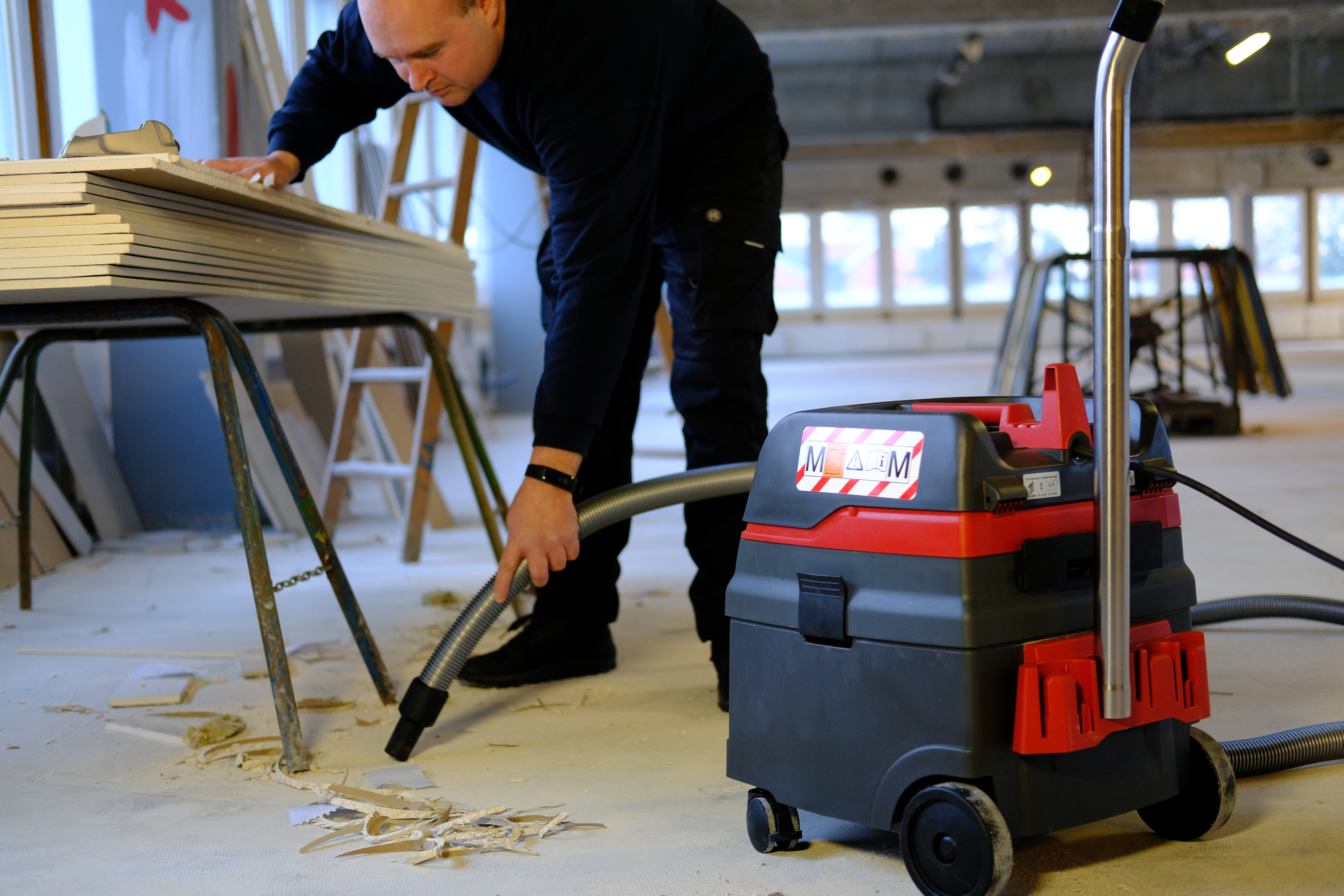 Kompakt våd-/tørsuger til både vådt og tørt affald. Støvsugeren har omskifterfunktion, der gør det nemt at skifte mellem brug af plast- og fleeceposer. Støvsugerens frontklap sikrer en støvfri transport. Med start- og stopautomatik til elværktøj. Fylder kun lidt i bilen. Kan bruges både med og uden pose. Filtrene optager ikke plads i beholderen, da de er placeret ved siden af motoren.