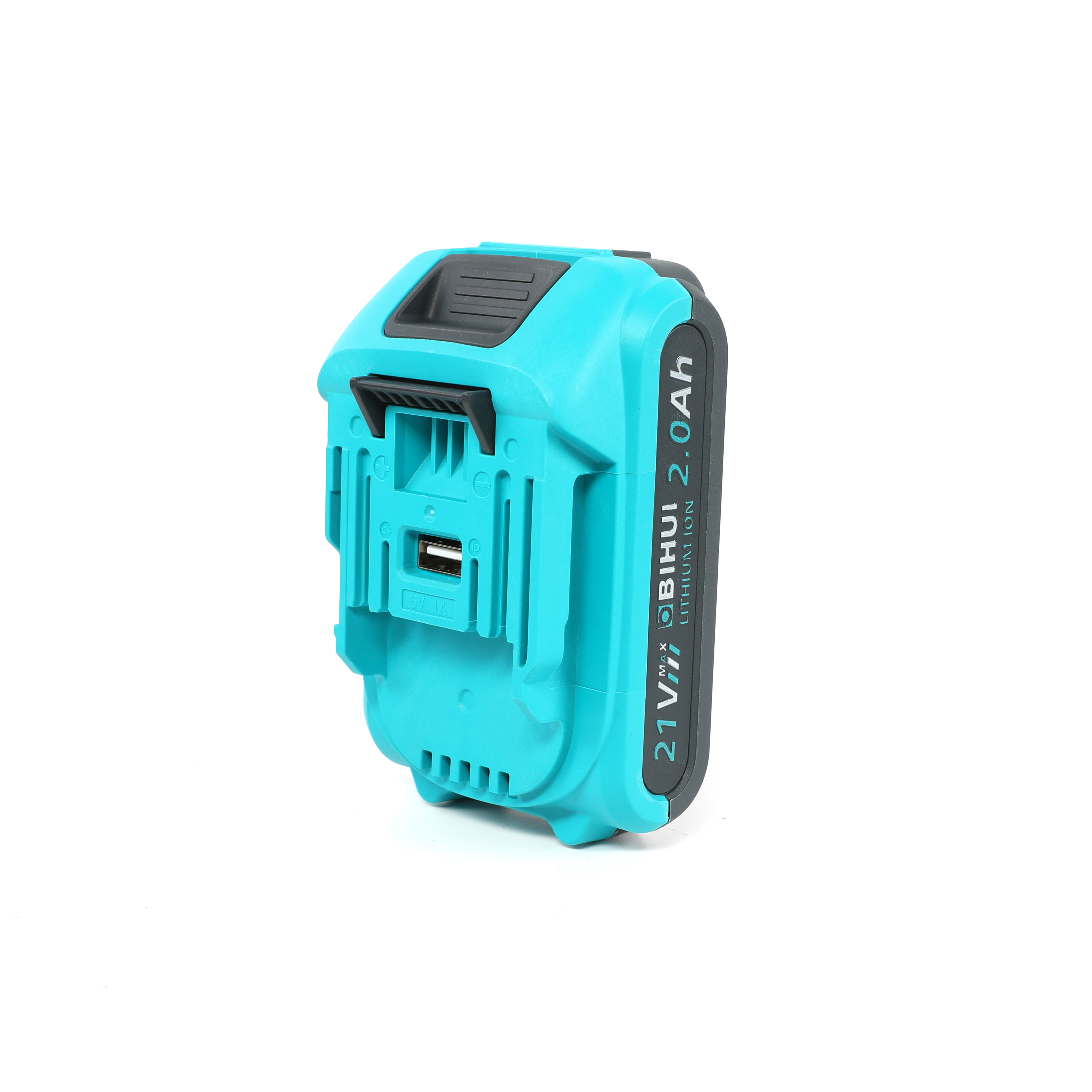 Kraftigt 21V – 2,0Ah lithium-ion erstatningsbatteri, der passer til både BIHUI flisevibrator og BIHUI akku løfter. Ideel som ekstra eller udskiftningsbatteri for længere driftstid.
