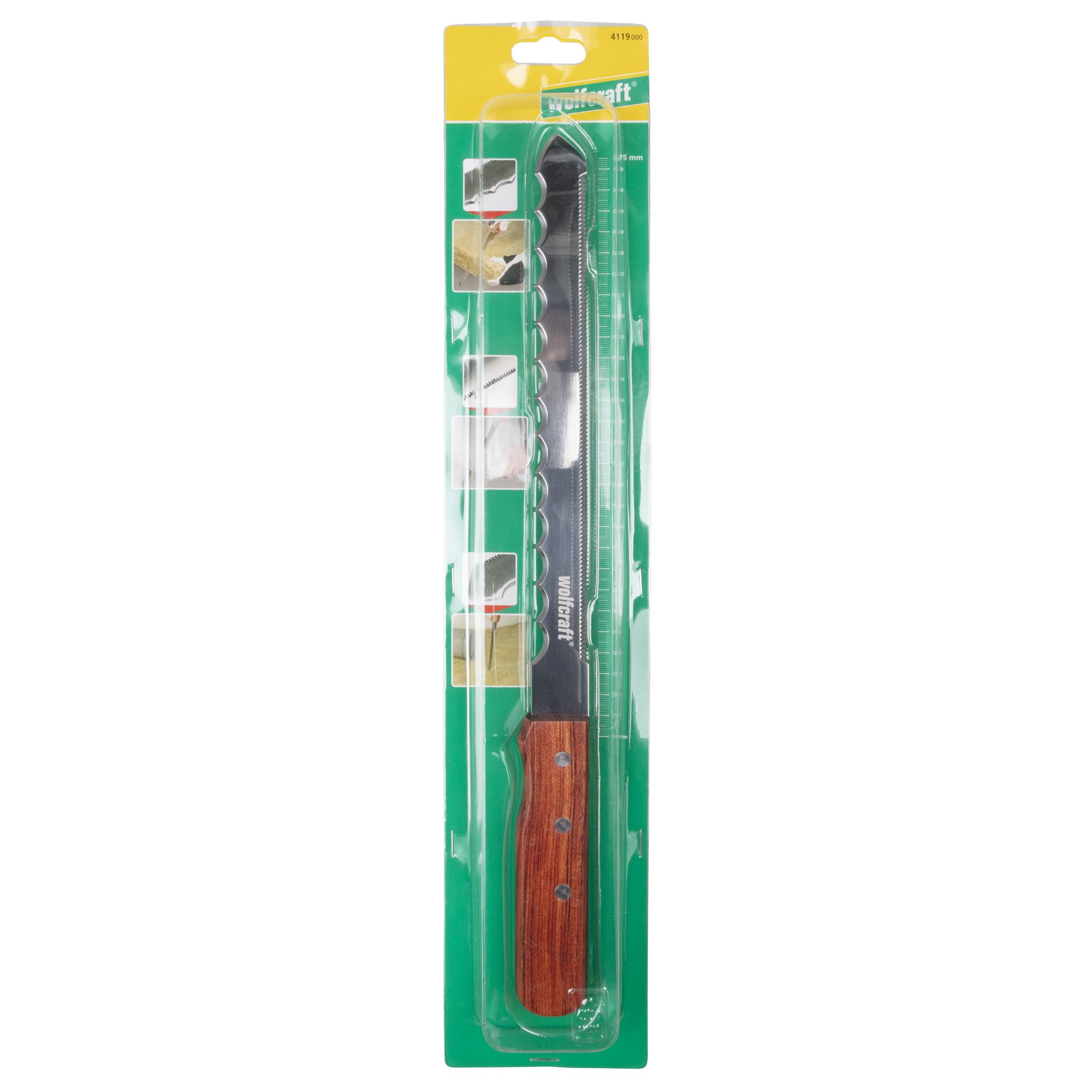 - 275 mm klinge med specialtandning på begge sider til forskellige isoleringsmaterialer