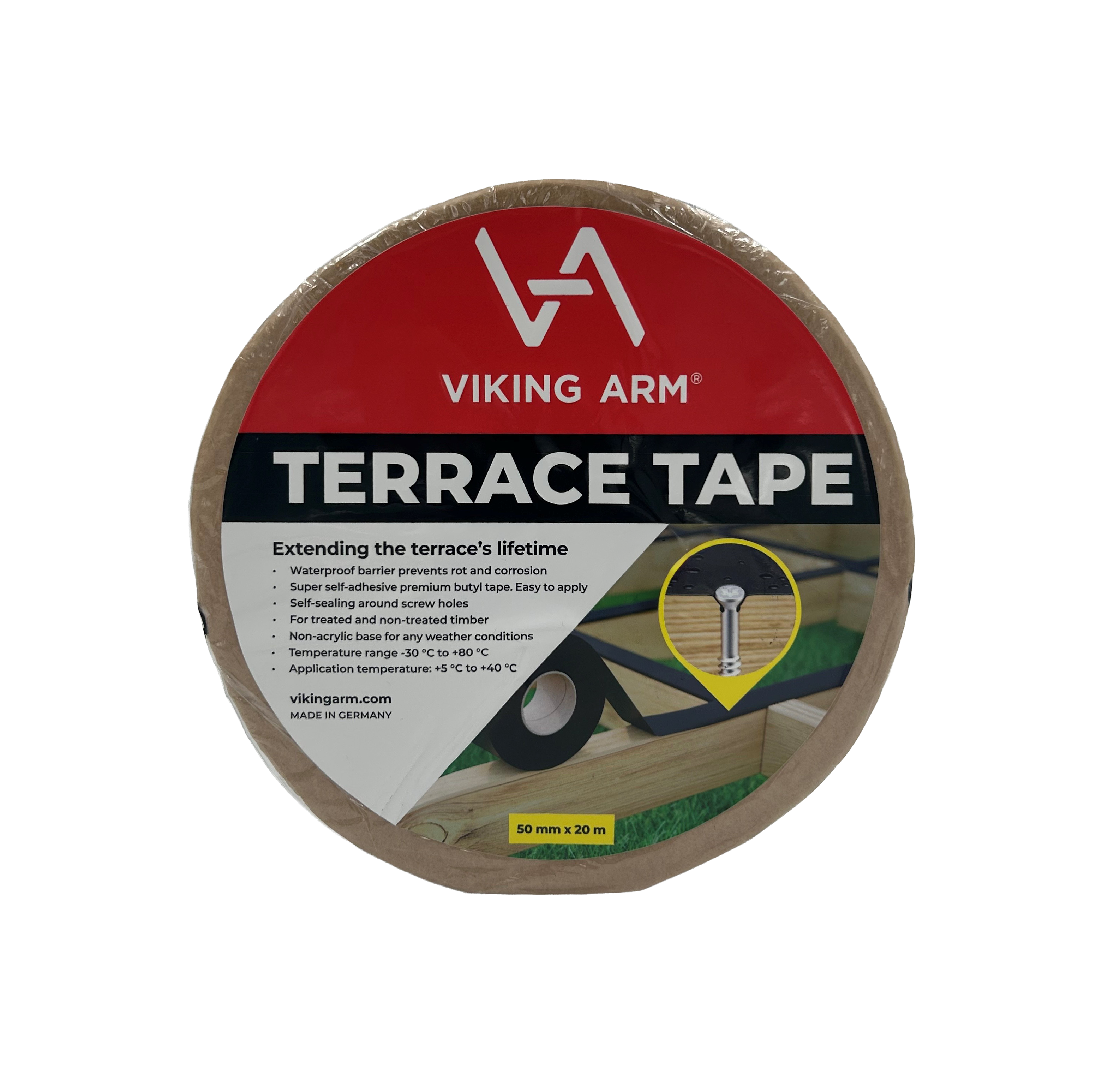 Fremstillet i slidstærkt, vandtæt og UV-bestandigt butylmateriale med høj vedhæftning – fungerer i temperaturer fra -30°C til +80°C og er velegnet til strøer, bjælker og andre bærende konstruktioner.