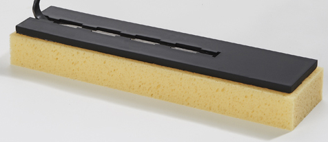 - Fugeskeen passer ind i bagpladen på svampene, så fugeskeens håndtag bliver til håndtaget for svampene