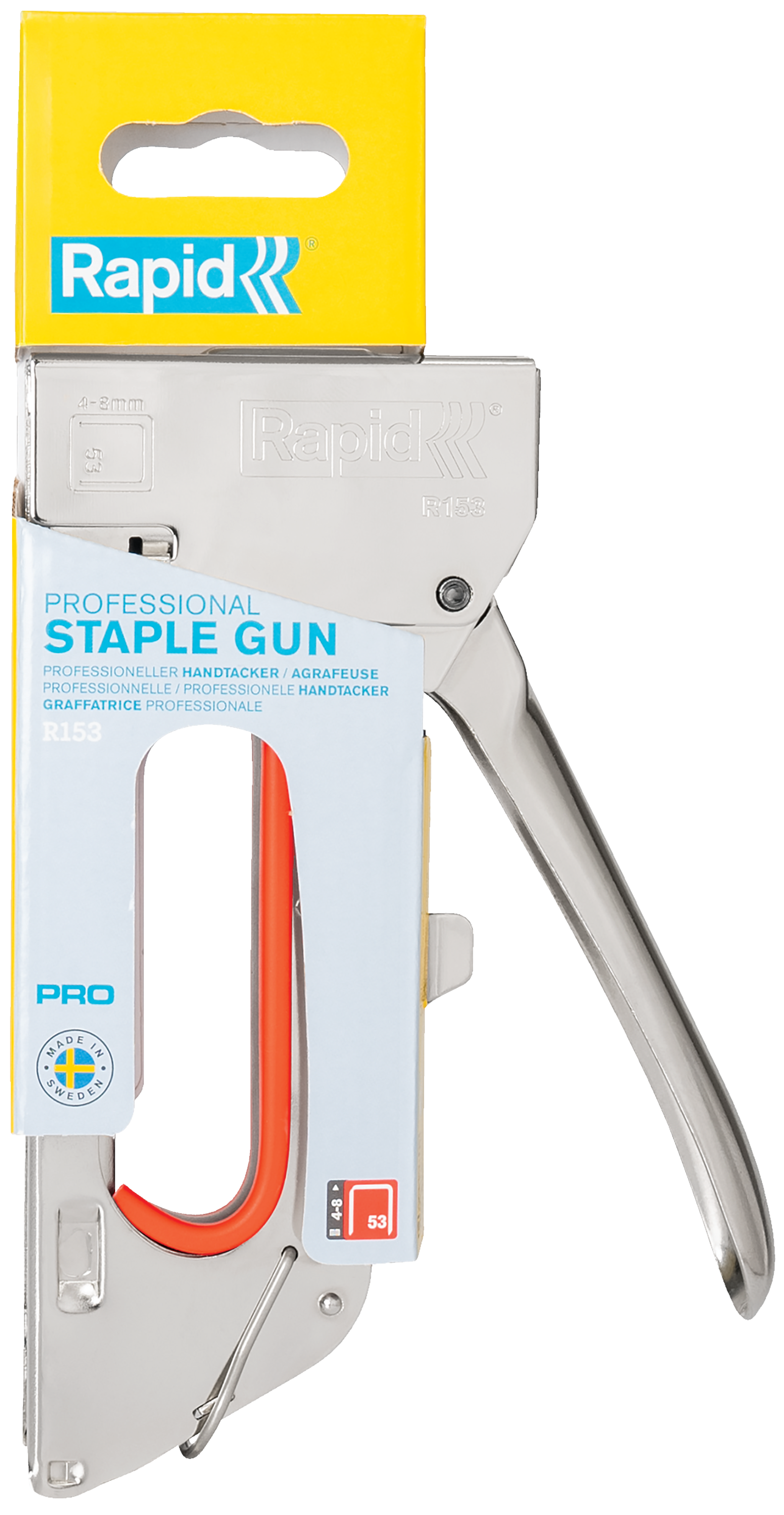 En let, brugervenlig hæftepistol, som er ideel til krævende, professionelt arbejde og præcisionsopgaver. Med dens overlegne effektivitet og holdbarhed kan R153E nemt klare regelmæssig brug. Denne model er perfekt til brugere med mindre hænder og kan anvendes til en række opgaver, som f.eks. møbelpolstring eller fastgøring af tyndere stof, læder, papir, etiketter eller sarte tekstiler.