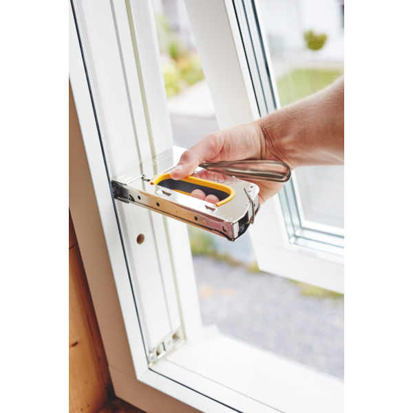 R30E er en professionel, præcis hæftepistol med lang, udvidet tud. Dette gør den ideel til brug på ujævne og svært fremkommelige overflader, hvor det ville være svært at få adgang med en almindelig hæftepistol. Brugerne sætter især pris på R30E's langtidsholdbarhed. Den har en ny, patenteret, brugervenlig aftrækker med justerbar styrke i 3 trin. Denne funktion gør den 40 % nemmere at håndtere. Egnet til mange krævende opgaver, som f.eks. fastgøring af vejrbeskyttelse, tekstiler, tæppe, læder og andre mere sarte tekstiler – især når der arbejdes på et ujævnt eller svært fremkommeligt område.