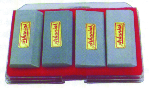 Hvæssesten af natur Arkansassten til brug med olie. Sættet består af sten med 4 forskellige former til finslibning og udskæringsværktøjer i displayboks. Kan sammenlignes med korn 6000/8000.