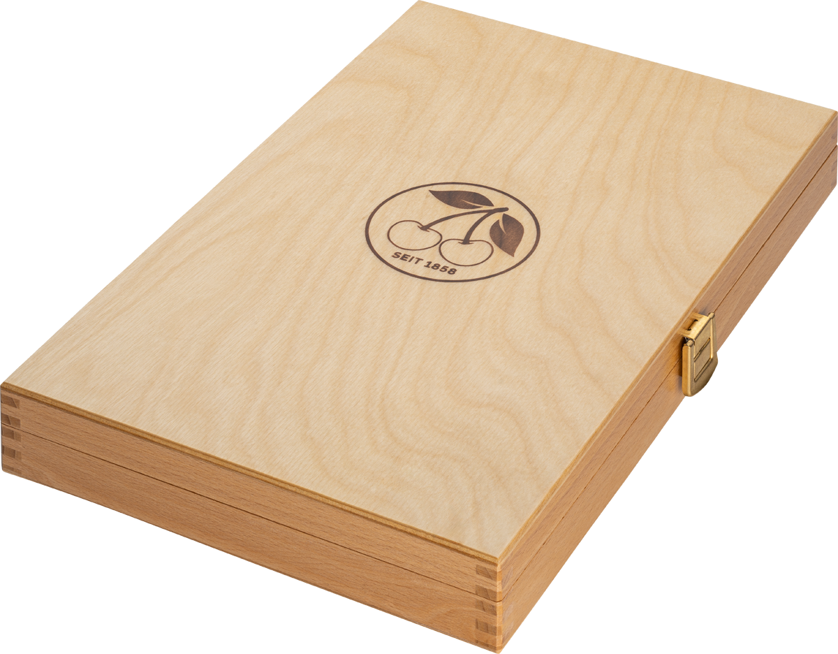 Sættet leveres i æske af træ.