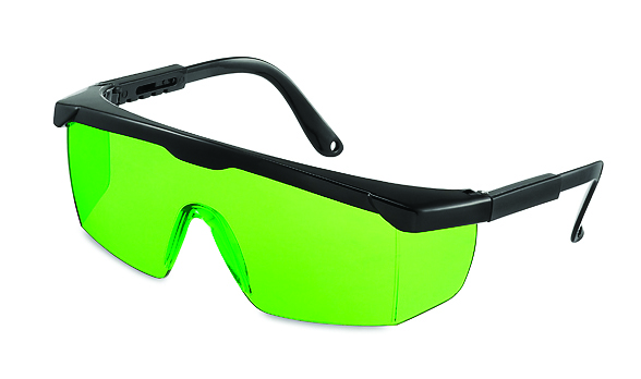 Laserbrille til brug med grønne lasere, som gør at laserstrålen bliver endnu mere synlig.