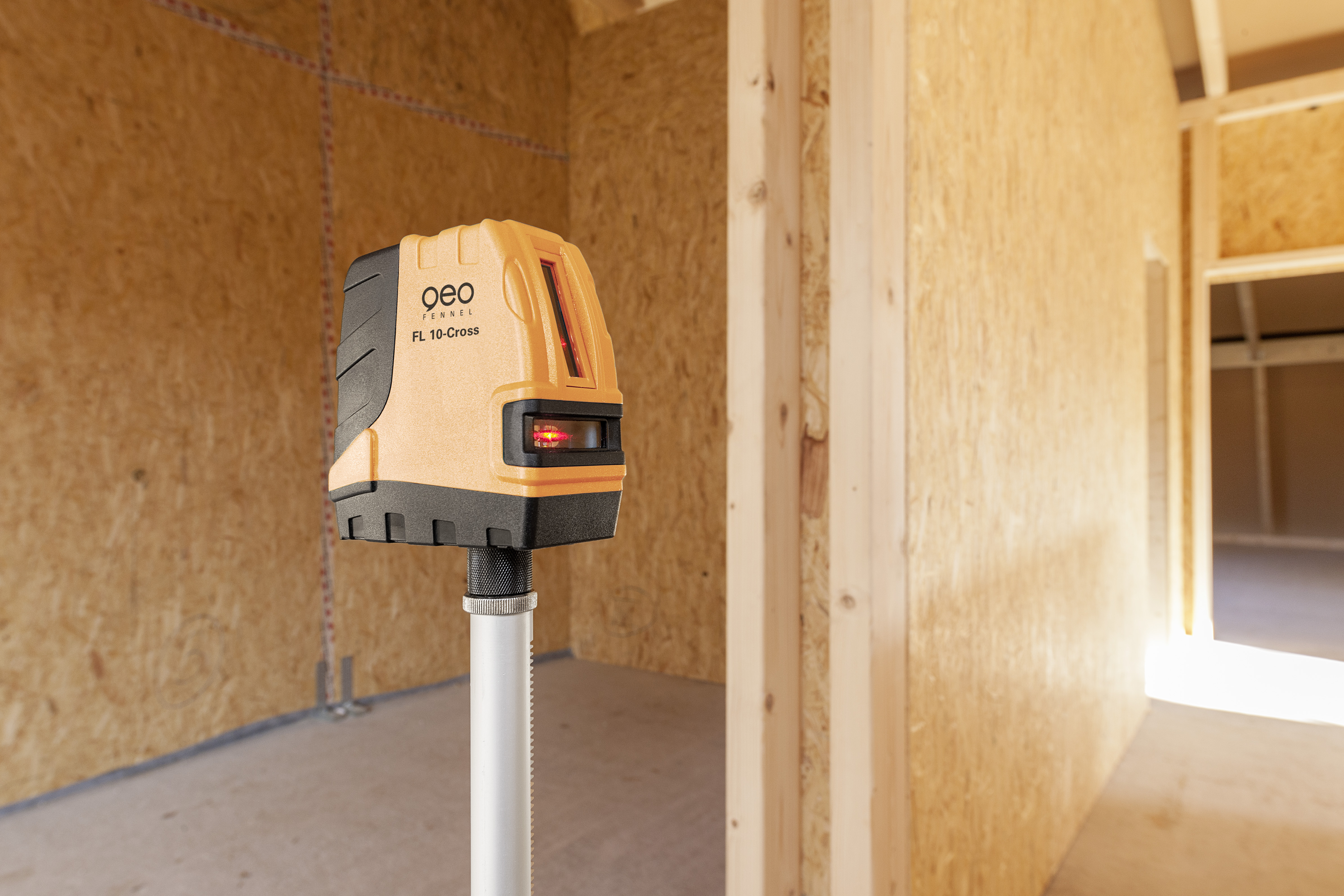 - 2 laserlinjer: 1 vandret og 1 lodret i 90° vinkel