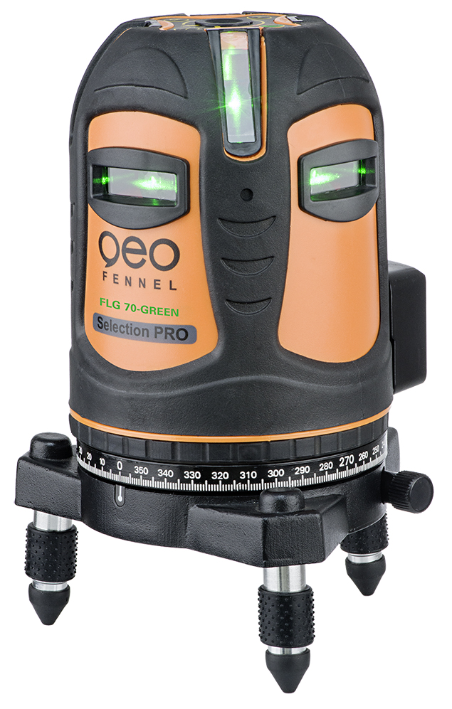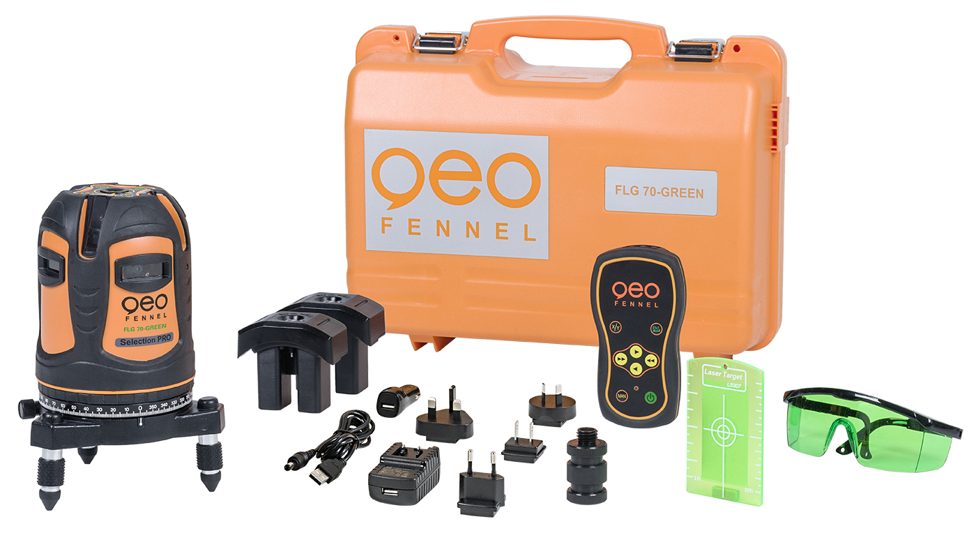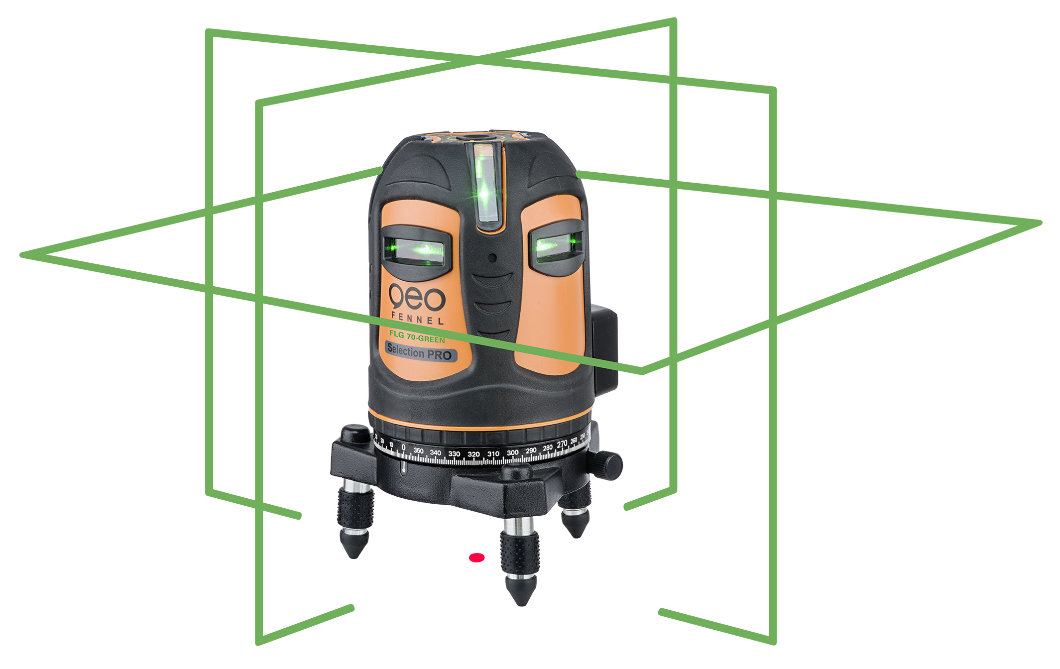 Multi-linjelaser med den nyeste grønne laserteknologi, der giver en fin og meget klar linjesynlighed. FLG 70 er enorm præcis med en nøjagtighed på ± 1 mm på 10 meter. 5 laserlinjer: 1 vandret 360° og 4 lodrette vinkelret på hinanden. Laserkryds på loftet, lodprik på gulvet. Med finjustering til præcis indstilling af de lodrette linjer. Laseren er specielt velegnet til opgaver der kræver at laseren stilles op med laserprikken over et bestemt punkt.