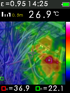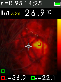 Termisk kamera til måling af overfladetemperatur uden kontakt. Automatisk visning af varme/kolde steder med konfigurérbar alarmfunktion.