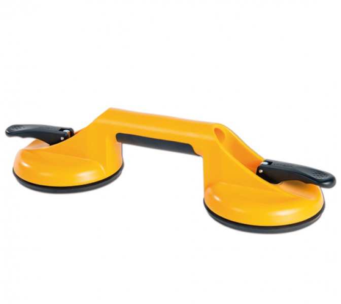 Glasløfter med udskiftelige gummi-sugeskiver. Kan bruges på alle materialer med glat overflade, såsom glas, poleret metal, marmor m.m. pga. bevægelige flader.