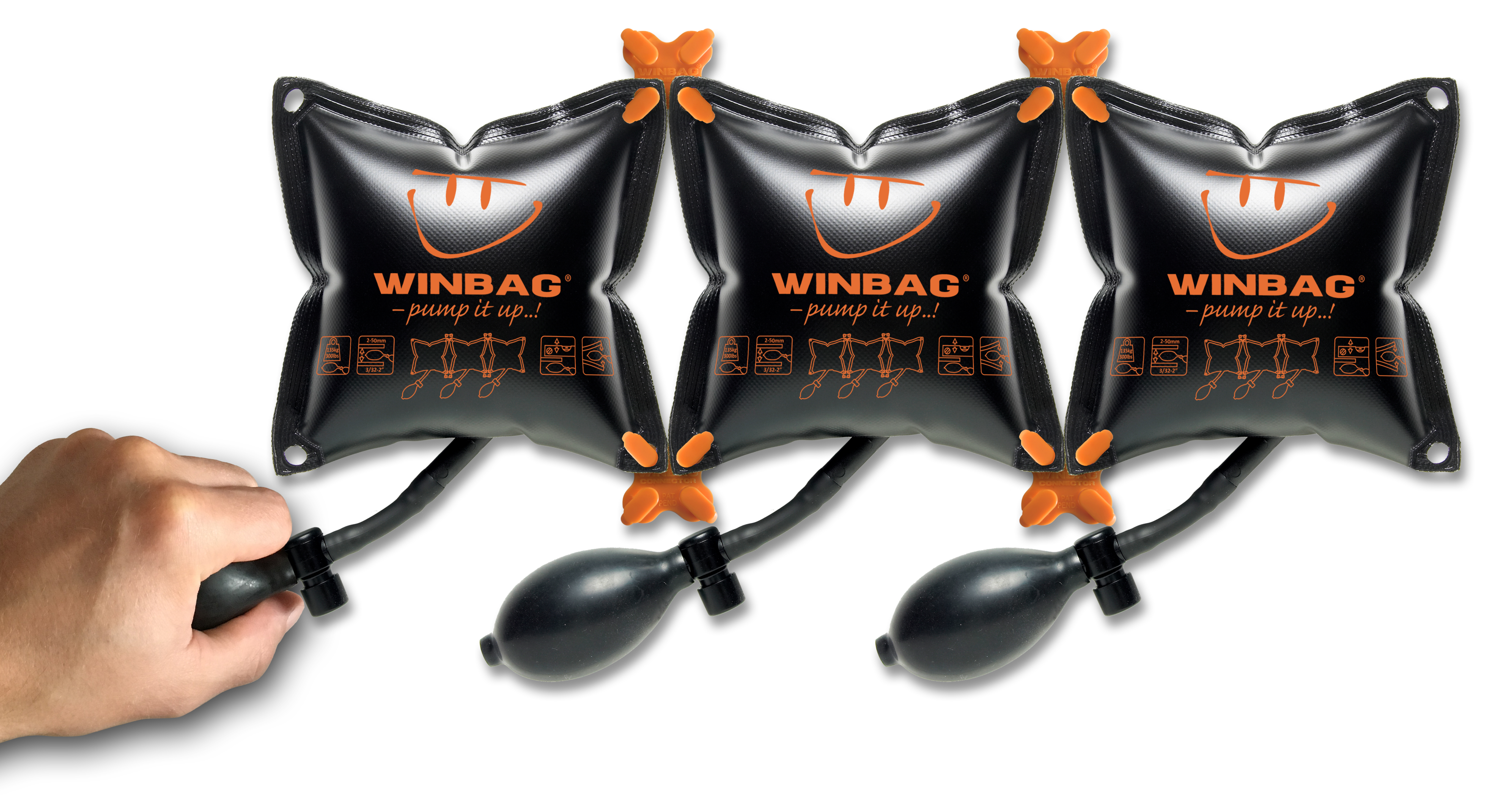 Den oppustelige Winbag Connect luftpude har mange anvendelsesmuligheder og er perfekt til at justere vinduer, positionere skabe, løfte tunge døre og meget mere. En Winbag har en kraftfuld bæreevne på 135 kg, men ved at klikke flere Winbag-enheder sammen med de nye Connectors, kan bærevnen blive øget til kraftfulde 450 kg. Du kan desuden sætte dem sammen i lige det mønster eller den form, der passer bedst til din applikation.