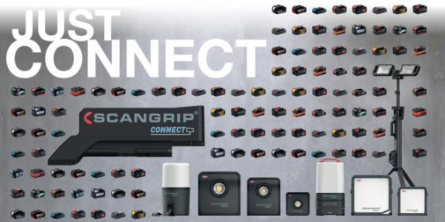 // SCANGRIP har udviklet en unik CONNECTOR til hvert enkelt mærke af el-værktøj, der bruger 18-V-batteripakker. Monter ganske enkelt din CONNECTOR på arbejdslampen, sæt dit batteri på, og så er du klar til at arbejde.